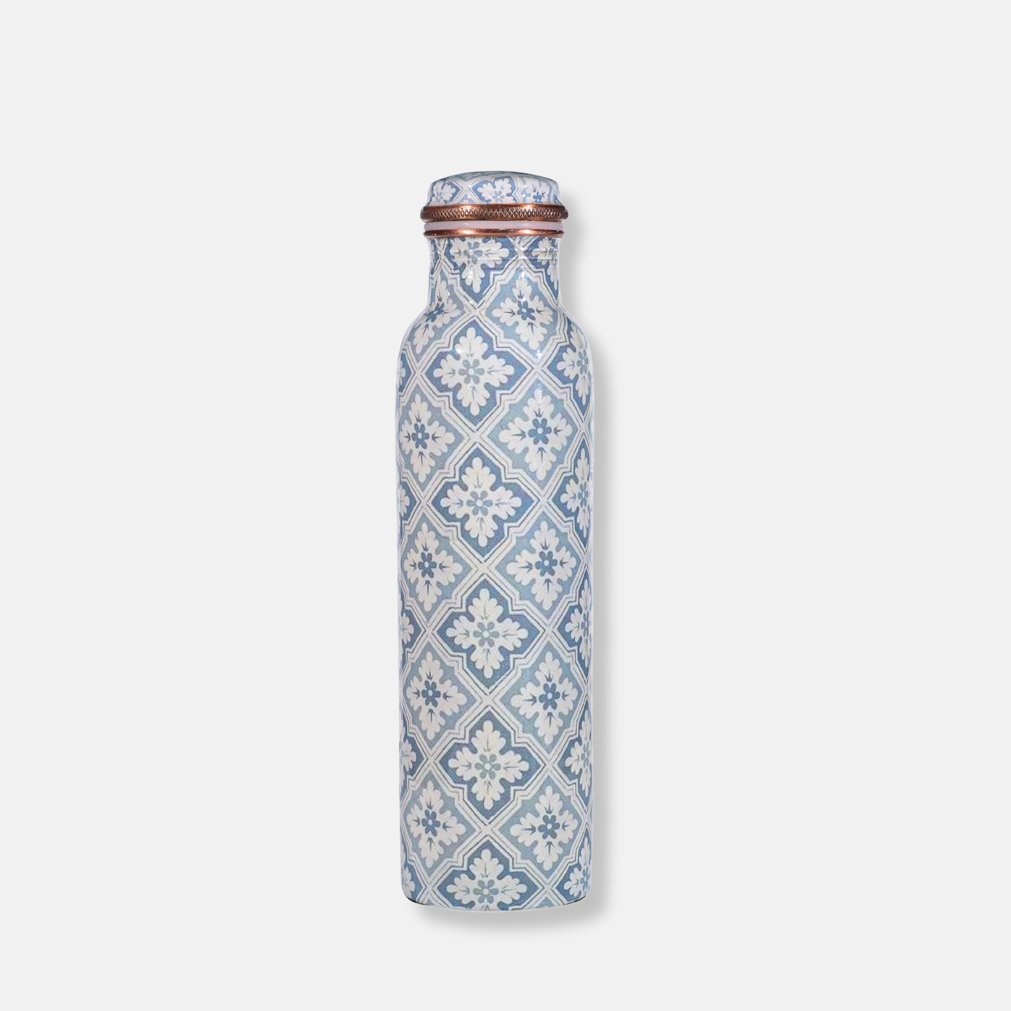 Serene and timeless, the Bedugul Meena Copper Bottle is inspired by the cool, misty charm of Bali’s highlands. Featuring a soft blue floral tile pattern that echoes the calm of lakeside temples and lush mountain gardens, this 900ml bottle brings a breath of tranquility to your everyday hydration. Made from pure copper, it naturally purifies water and aligns with traditional Ayurvedic practices to support your wellness journey with style that soothes the senses.